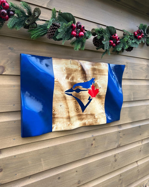 Hand Carved Wavy Toronto Blue Jays Wood Flag